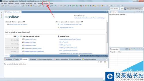 1、首先,打開MyEclipse開發(fā)平臺,上方找到“windows”選項