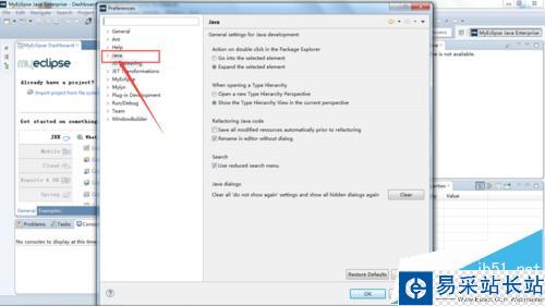 2、展開,選擇“Preferences”選項,出現(xiàn)如下界面,我們可以看到“java”