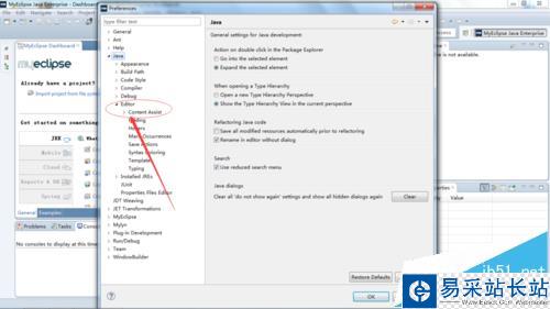 3、依次打開“java”——>"Editor"——>"Content Assist"
