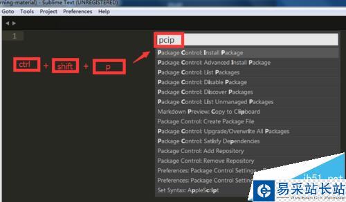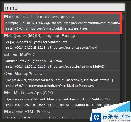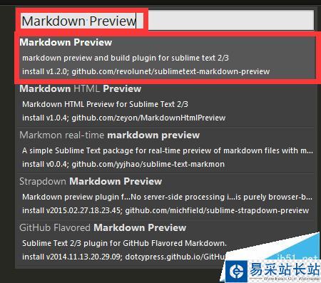 1、安裝Markdown Preview 插件。輸入 Shift + Ctrl + P,輸入pcip(也可以點擊 Preferences --> 選擇 Package Control: ,然后輸入install),然后在插件庫中分別選擇安裝Markdown Preview;