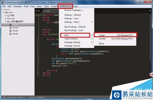 3、開始調整,點擊菜單欄“preferences”——“font”——“larger”;