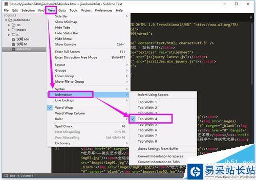 5、你也可以在菜單欄中點擊“view”——“indentation”——“tab width 4”;
