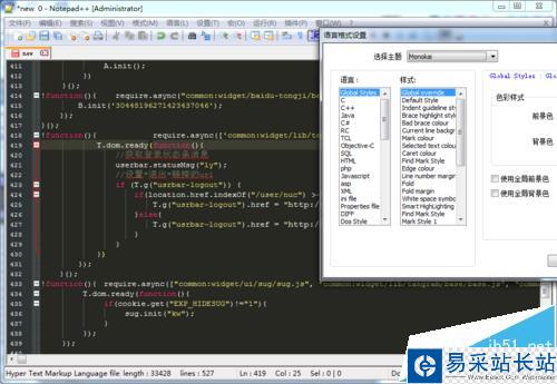 Notepad++默認的主題比較不同,但提供了很多不同的主題,我們可以先選擇一種主題風格,然后再設置一下我們習慣的字體,基本上就ok了。