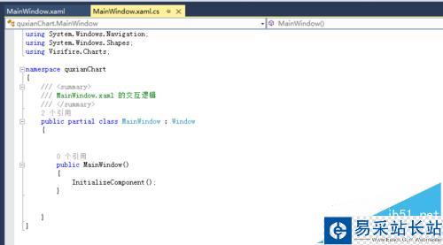 5、引用過來之后,我們記得要在xaml文件的頭部去引用這個chart庫,也就是說我們該通過什么途徑去找到這個chart。