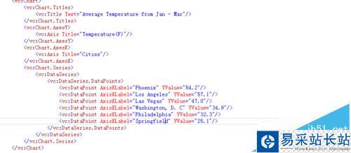 6、然后我們就可以直接引用這個chart庫去建立chart所需要的一些屬性,當然,如果沒有關了什么重要的東西,可以直接在前臺代碼直接完成,主要包括chart橫縱坐標集,標題,以及數據集。