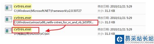 1、首先我們?cè)谖业碾娔X界面搜索cvtres.exe這個(gè)可執(zhí)行文件,如下圖。如果您的電腦安裝了vs2010,那么一般都是能夠搜索出不止一個(gè)此文件的。