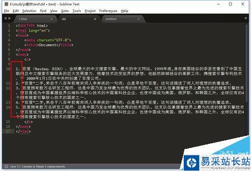 1、打開你需要的文件,如圖,小編想替換文件中數(shù)字序號,讓其分段顯示;