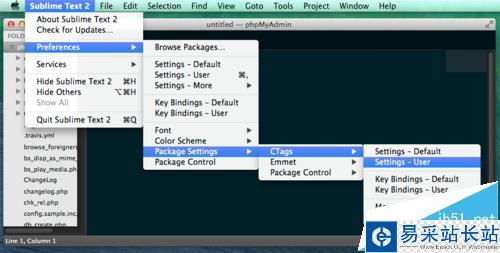 7、打開菜單在Preferences(設置)菜單中打開Package Control(插件管理器)settings->ctags->settings-user和settings-default