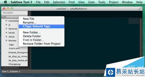 5、這時在側左欄的工程/項目文件上右鍵會看到CTags: Rebuild Tags菜單項