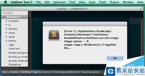 [Errno 1] /Applications/Xcode.app/Contents/Developer/Toolchains/XcodeDefault.xctoolchain/usr/bin/ctags: illegal option -- R