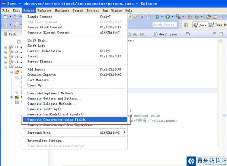2、點擊“source---------generate constructor using fields”,如下圖所示:
