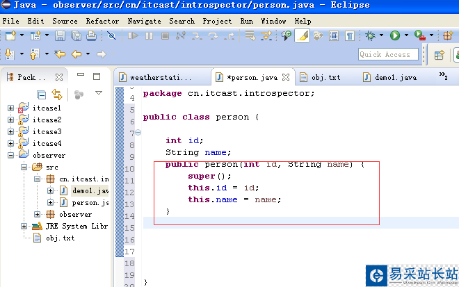 4、回到編輯器,我們可以看到帶參的構造方法就出來了,如下圖所示: