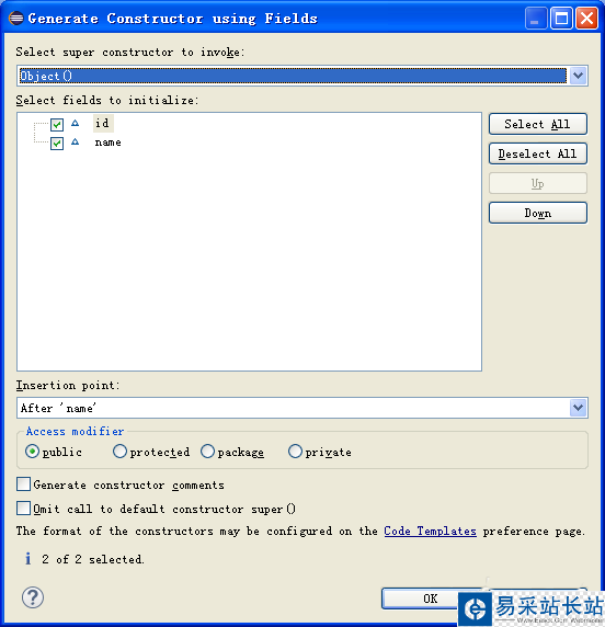 3、進去之后,勾選需要重寫的方法,點擊"ok"