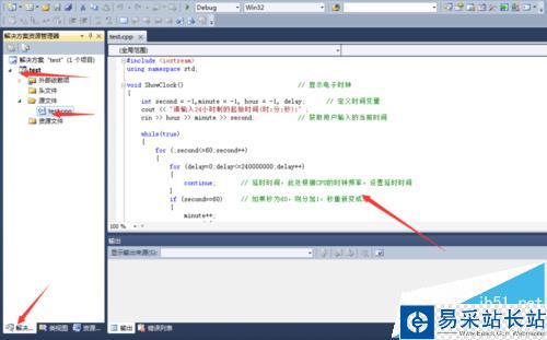 4、打開后,點開源文件中的.cpp,如圖所示,程序很簡單