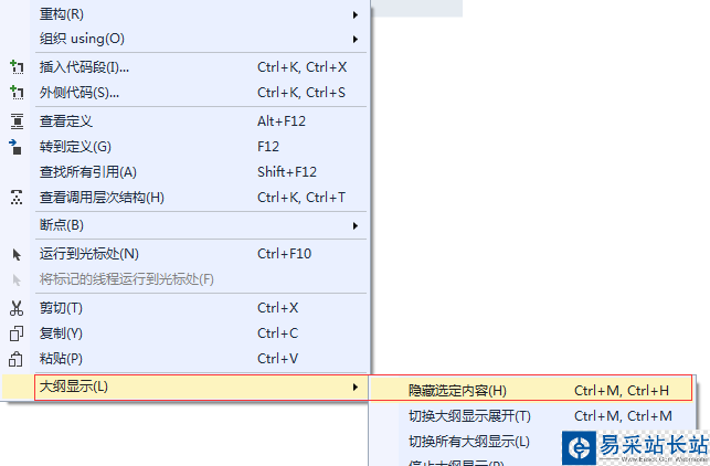 在VS編程中,有事方便查看以及快速查找,需要將部分內容隱藏起來,下面介紹一下如何將選定的內容隱藏起來