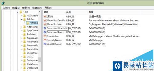 3、在打開注冊表,找到HKEY_LOCAL_MACHINE → OFTWARE →Wow6432Node →Microsoft →VisualStudio →11.0 →VMDebugger.Connect雙擊打開
