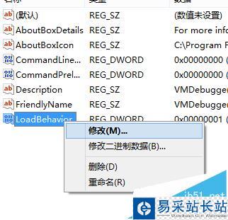 5、選中LoadBehavior,點擊右鍵,選中修改