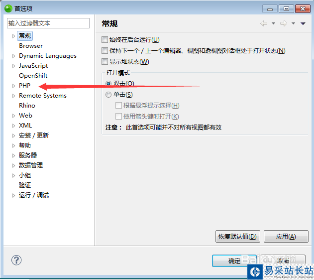 3、這樣就打開這個整體的界面了,因為這個集成開發(fā)環(huán)境支持的語言比較多,我們想要調整的是PHP 的語法顏色,所以我們要找到PHP這個選項
