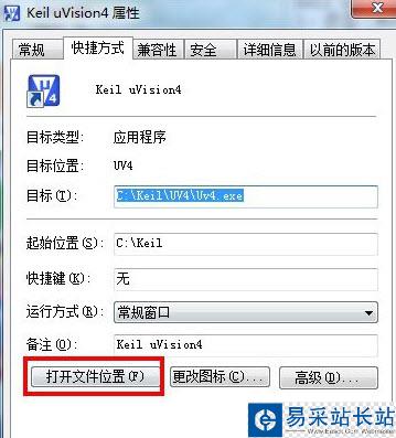 1.鼠標右鍵點擊keil uvision3面快捷方法,然后點擊屬性