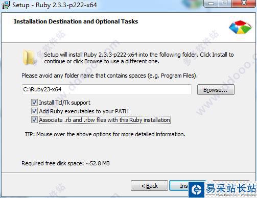 1.解壓壓縮包,如果你電腦為64位雙擊運行解壓后文件中的“rubyinstaller-2.3.3-x64.exe”,如果你是32位則運行"rubyinstaller-2.3.3.exe"。將出現以下安裝界面。