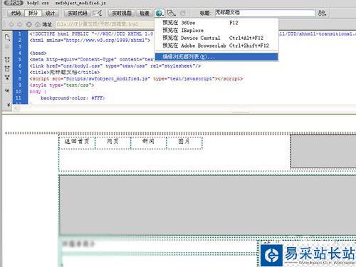 2、點(diǎn)擊工具欄中的在瀏覽器中預(yù)覽/調(diào)試按鈕,從下拉菜單中選擇編輯瀏覽器列表選項(xiàng)。