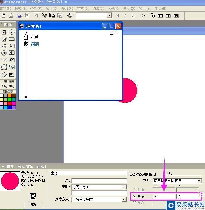 7、設(shè)置好目標(biāo)坐標(biāo),小球的運(yùn)動(dòng)就設(shè)置好了。