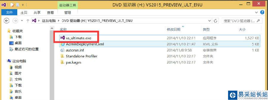 2、雙擊下載后的軟件:vs2015.preview_ult_ENU.iso,將他加載到虛擬光驅(qū)中,點擊vs_ultimate.exe,開始運行: