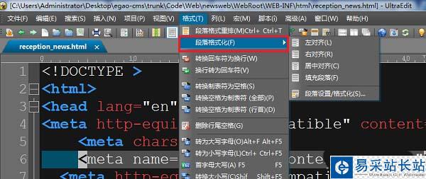 5、我們也可以對打開的頁面進行格式,點擊“格式->段落格式化”,如下圖所示: