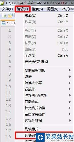 4、選擇菜單欄的【編輯】-【列塊編輯】