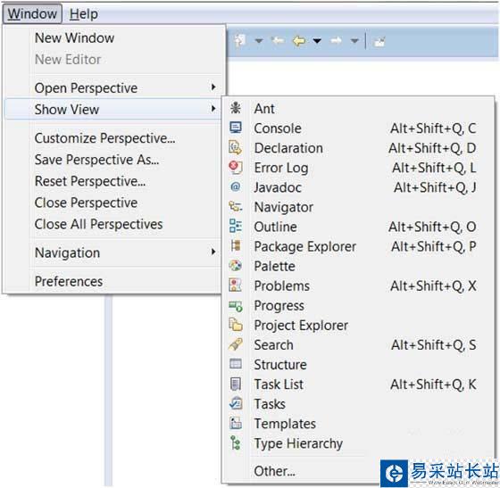 1、你可以在 Window 菜單中點(diǎn)擊 "Show View" 選項(xiàng)打開(kāi)其他視圖,如下圖所示:
