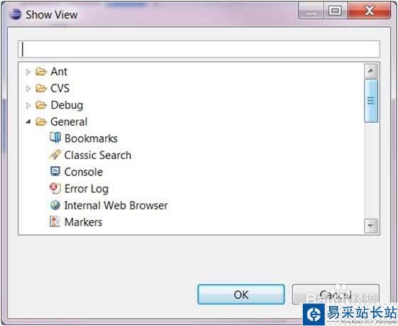 2、點(diǎn)擊 "Other" 菜單選項(xiàng)會(huì)彈出一個(gè) "Show View" 對(duì)話框,對(duì)話框中你可以查找和激活視圖,如下圖所示:
