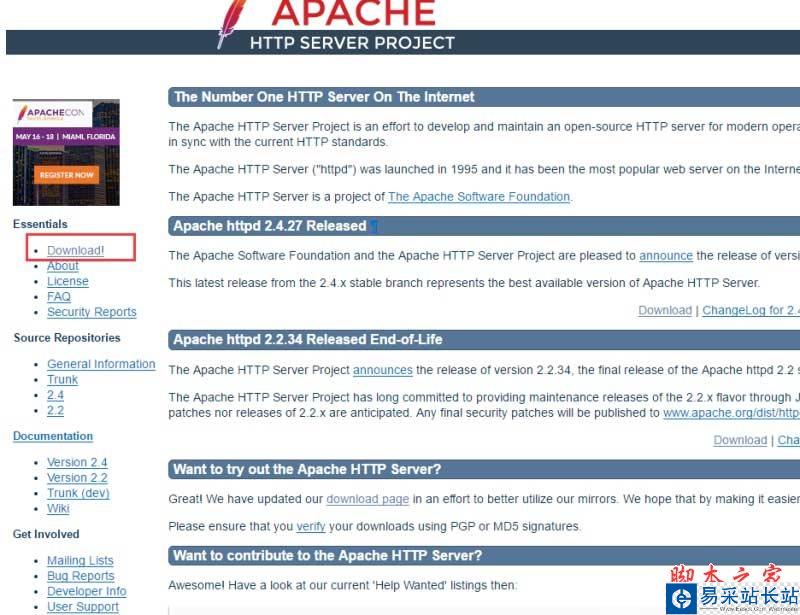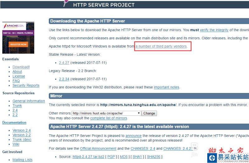 1、進入apache服務器官網http://httpd.apache.org/,這里我們以下載穩定版的