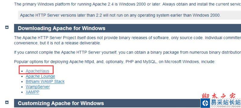 其中后兩個是有名的wamp以及xampp集成環境,如果只想下載apache可以選擇前三個網站,這里我們第一個ApacheHaus為例。