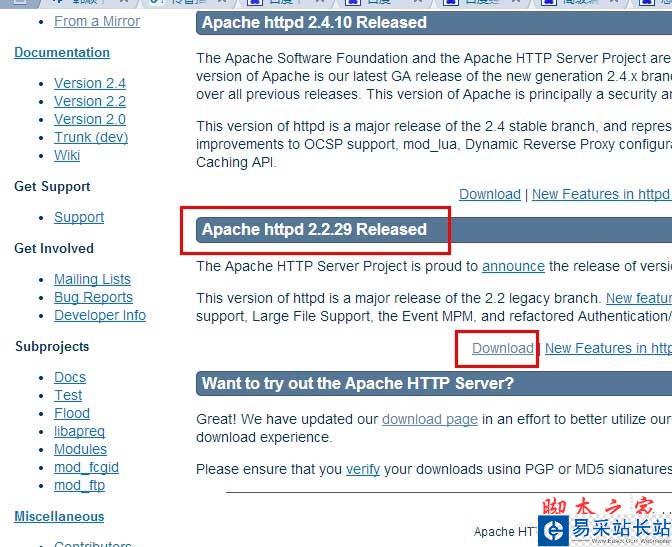 httpd 2.2.29為例,點擊download。