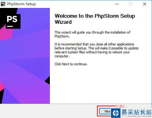 6、雙擊PhpStorm安裝包,進入歡迎安裝界面,然后點擊“Next”按鈕繼續安裝,如下圖所示。