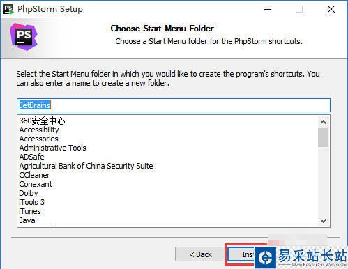 9、進入到“選擇菜單文件夾”,一般默認即可,然后點擊“Install”按鈕,如下圖所示。
