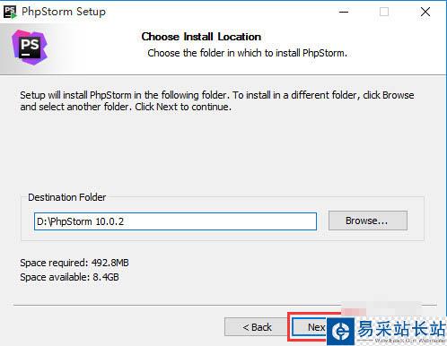 7、進入到“選擇安裝目錄”界面,選擇安裝的目錄,然后點擊“Next”按鈕,繼續安裝,如下圖所示。