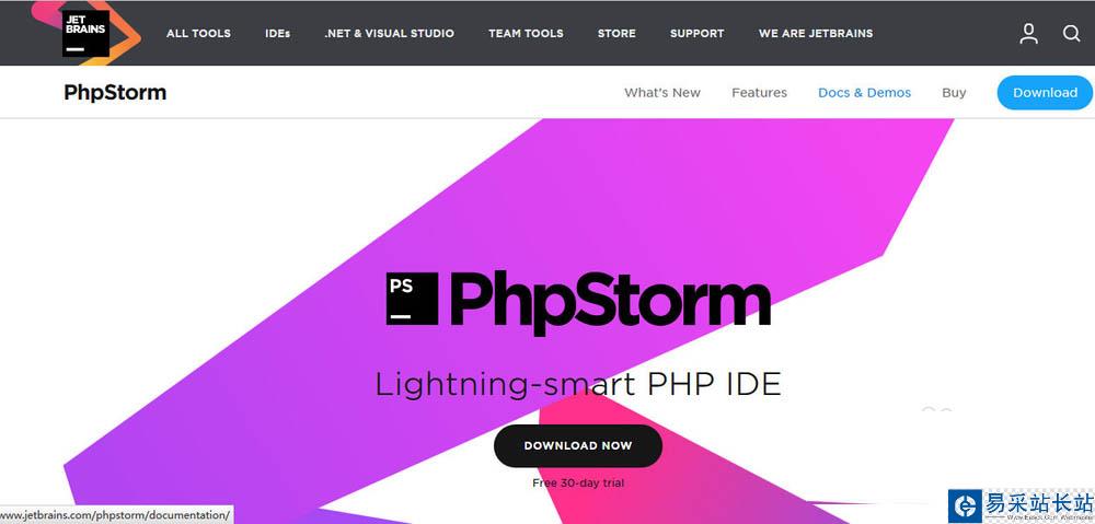 3、進入“PhpStorm”官網后,點擊“DOWNLOAD”按鈕,進入下載頁面,如下圖所示。