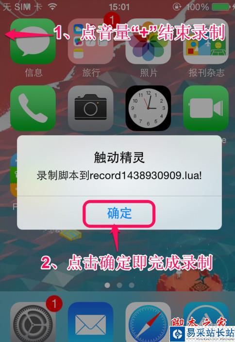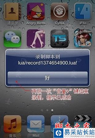 2、看下圖,等你 感覺錄制好了后,再按一下【音量+】,就可以結(jié)束錄制,并且會提示你錄制腳本的放置目錄