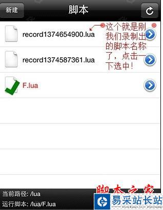 4、如下圖,注意剛錄制的腳本,只要點擊一下就可以選中了;