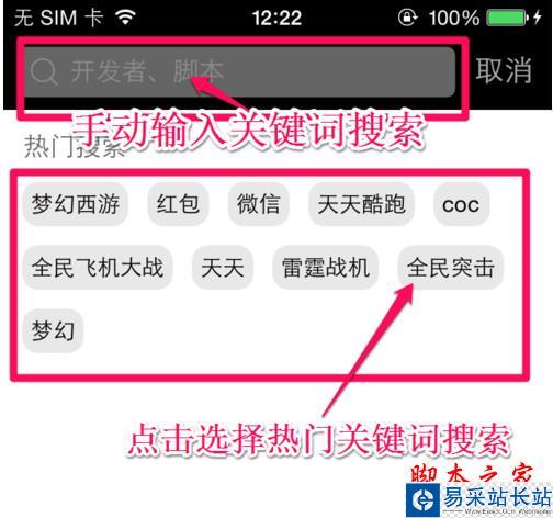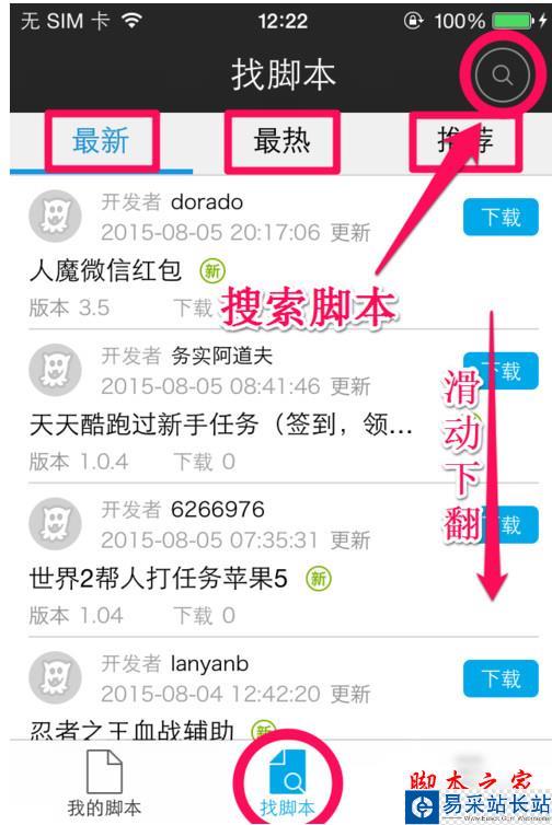 打開觸動精靈點擊正下方中間的找腳本圖標。點擊后進入下圖,您可以在此尋找您需要的腳本。
