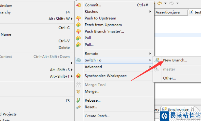 4、選擇了switch to的選項,在下一級菜單進行選擇為new branch的選項。
