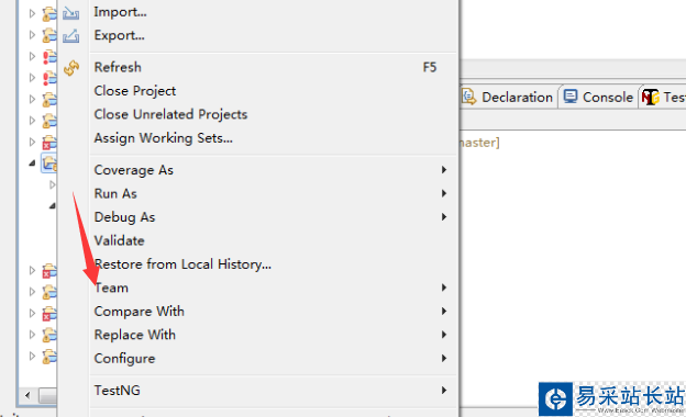 2、進行右鍵項目后,彈出了下拉菜單中進行選擇為“team”的選項