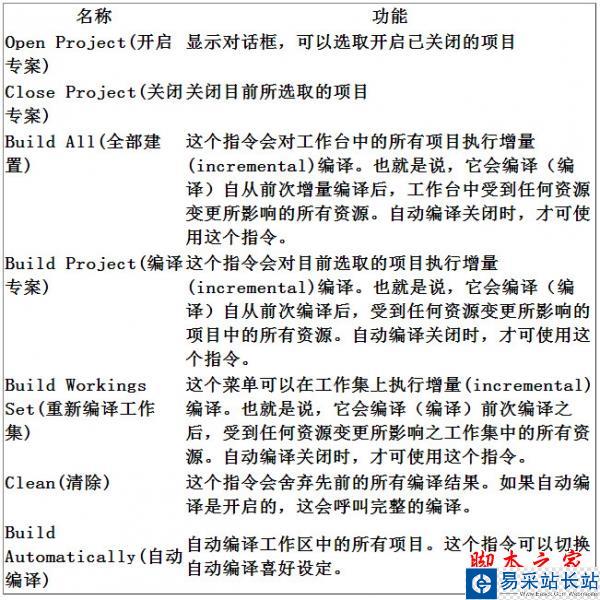 「項目」菜單可以對工作臺中的項目執行動作(建置或編譯)。