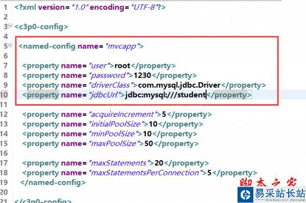 5、修改連接數據庫配置文件,其路徑在/src/c3p0-config.xml