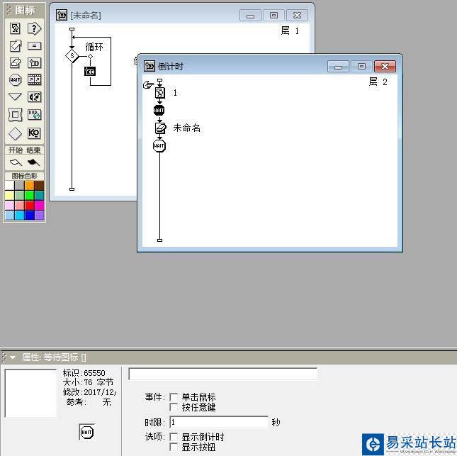 6、擦除圖標設置擦除對象是顯示圖標1,同樣,最后一個的等待圖標設置和上面的等待圖標設置一樣。這樣,我們的群組圖標中的所有圖標屬性設置就全完成了。