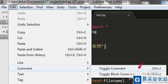 1、筆者在工具欄菜單頁面找到了注釋的快捷鍵,然后嘗試使用快捷鍵注釋代碼。發現失效。代碼無動于衷~