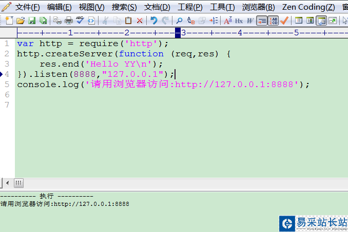 用editplus快速編寫并執(zhí)行nodejs代碼的方法步驟: