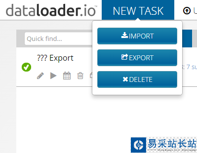 4、登陸成功,進入了dataloader的界面,在右上角可以看到我們salesforce的賬號中間的提示,點擊 new task按鈕