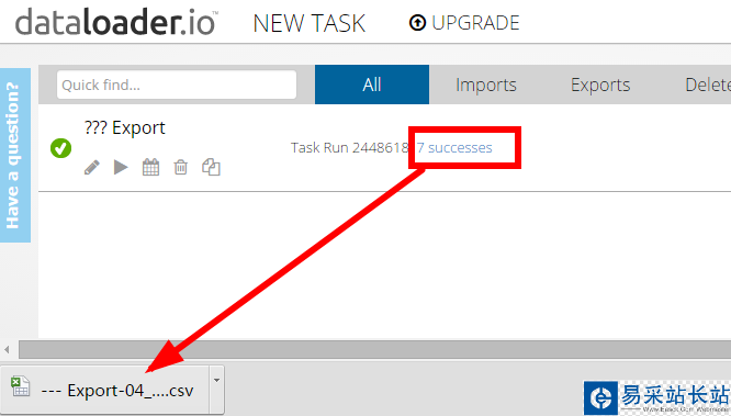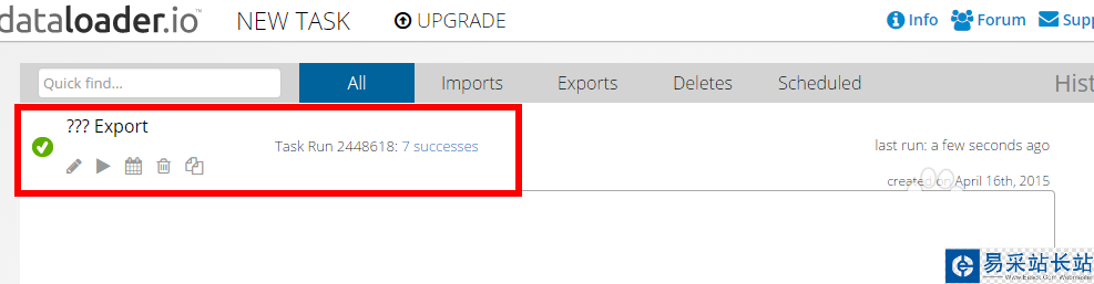 5、點擊newtask按鈕,下拉菜單中有3個功能按鈕,我們就先選擇導出試試吧,看看能導出哪些數據